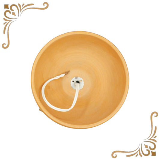 Lampada artigianale in legno con coppa di ceramica