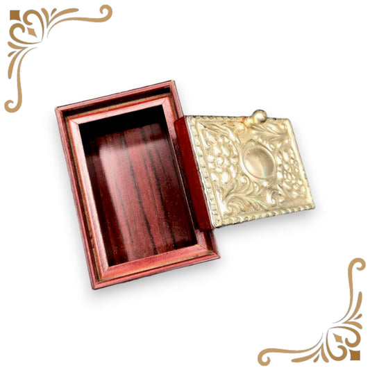Piccolo portagioie in legno con il coperchio decorato in argento